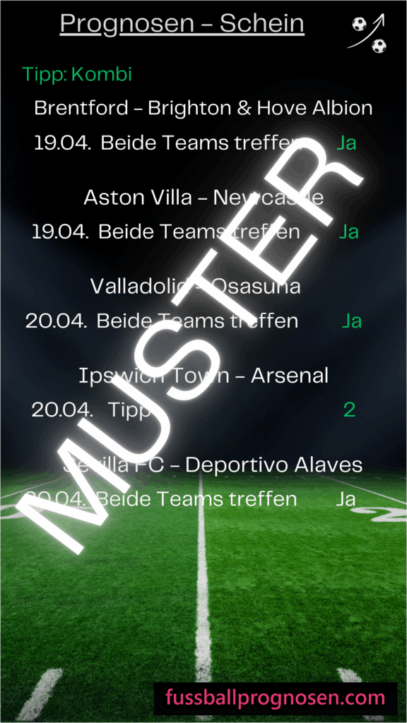 Mit Kombi 1 erhalten Sie eine sorgfältig erstellte Prognose für 4 spannende Spiele aus den Top-Ligen Europas. Starten Sie jetzt mit einem kleinen Einsatz und maximieren Sie Ihre Gewinnchancen.